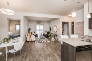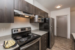 You will be impressed by our contemporary yet open concept floor plans. Enjoy first class finishes such as quartz counter tops, stainless steel kitchen appliances, vinyl plank flooring, and 9-foot-high ceilings. Each suite has its own full-size washer and dryer, which makes doing laundry effortless. During those hot Edmonton summer nights Pine Creek Manor has you covered with Air Conditioning in every suite.